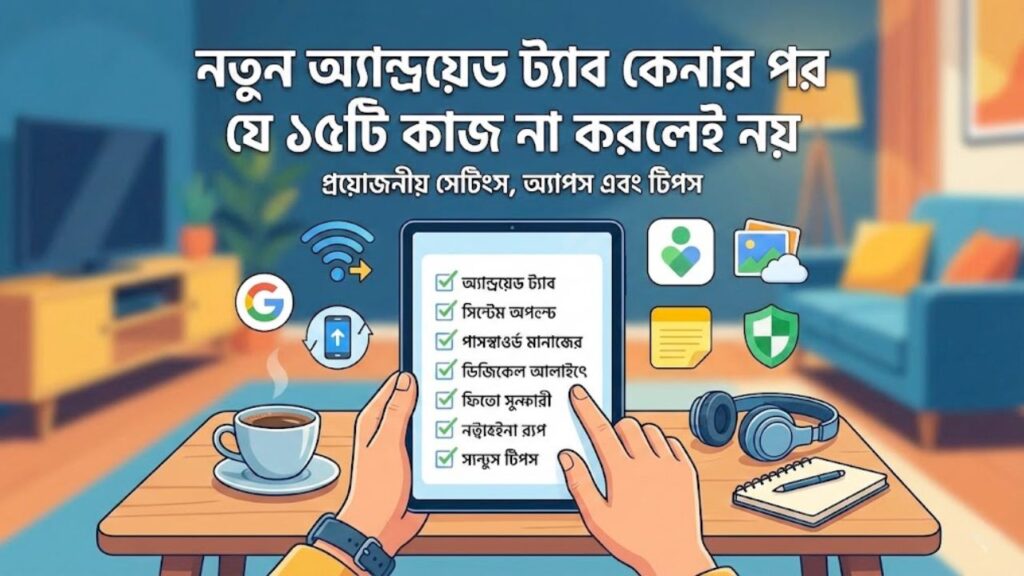 নতুন অ্যান্ড্রয়েড ট্যাবলেট কেনা মানে শুধু একটি ডিভাইস কেনা নয় — এটি একটি দীর্ঘমেয়াদী বিনিয়োগ। ভারতের ট্যাবলেট বাজারে Q2 2025-এ ২০% প্রবৃদ্ধি এবং 5G ট্যাবলেটের ব্যাপক গ্রহণ প্রমাণ করে যে এই ডিভাইসগুলো আমাদের দৈনন্দিন জীবনের অপরিহার্য অংশ হয়ে উঠছে। উপরের ১৫টি পদক্ষেপ অনুসরণ করলে আপনার ট্যাবলেট শুধু নিরাপদ নয়, বরং দ্রুততম পারফরম্যান্স এবং দীর্ঘস্থায়ী ব্যাটারি লাইফ দেবে। সিকিউরিটি সেটআপ থেকে শুরু করে প্রোডাক্টিভিটি অ্যাপ পর্যন্ত প্রতিটি ধাপ আপনার ব্যবহার অভিজ্ঞতাকে সম্পূর্ণ ভিন্ন মাত্রায় নিয়ে যাবে। মনে রাখবেন, একটি আপডেটেড এবং সুরক্ষিত ট্যাবলেট শুধু আপনার ডেটা রক্ষা করে না, বরং ডিভাইসের আয়ুও বাড়িয়ে দেয়। তাই আজই এই গাইড অনুসরণ করুন এবং আপনার নতুন ট্যাবলেটের সম্পূর্ণ সম্ভাবনা আনলক করুন।