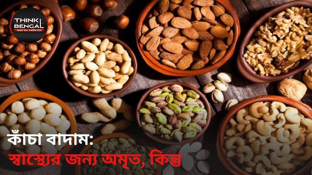 কাঁচা বাদামে অ্যাফ্লাটক্সিন নামক একটি বিষাক্ত পদার্থ থাকতে পারে, যা লিভারের ক্ষতি করতে পারে।