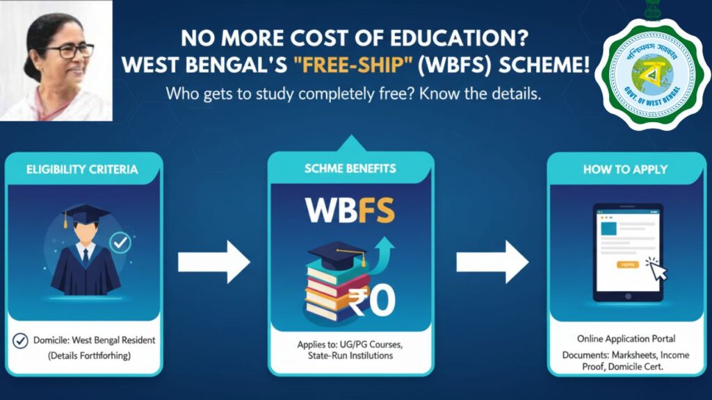 পশ্চিমবঙ্গ ফ্রি-শিপ (WBFS) প্রকল্পটি রাজ্য সরকারের একটি যুগান্তকারী পদক্ষেপ, যার মূল লক্ষ্য হল রাজ্যের মেধাবী অথচ অর্থনৈতিকভাবে দুর্বল ছাত্রছাত্রীদের উচ্চশিক্ষা সম্পূর্ণ বিনামূল্যে প্রদান করা। এই প্রকল্পটি কোনো একক স্কিম নয়, বরং এটি রাজ্য সরকারের সেই নীতির প্রতিফলন যার মাধ্যমে বিভিন্ন স্কলারশিপ ও ফি-ছাড়ের যোজনার মাধ্যমে শিক্ষার্থীদের টিউশন ফি, ভর্তি ফি এবং অন্যান্য আবশ্যিক ফি মকুব করা হয়। প্রধানত, স্বামী বিবেকানন্দ মেরিট কাম মিনস স্কলারশিপ (SVMCM) এবং ইঞ্জিনিয়ারিং কোর্সের জন্য টিউশন ফি ওয়েভার (TFW) স্কিমের মাধ্যমে এই ‘ফ্রি-শিপ’-এর সুবিধা প্রদান করা হয়। এই প্রকল্পের অধীনে, নির্দিষ্ট আয়ের সীমার নিচে থাকা পরিবারগুলির ছাত্রছাত্রীরা, যারা নির্দিষ্ট অ্যাকাডেমিক যোগ্যতা পূরণ করে, তারা স্নাতক, স্নাতকোত্তর বা ডিপ্লোমা স্তরে প্রায় সম্পূর্ণ বিনামূল্যে পড়াশোনা চালিয়ে যাওয়ার সুযোগ পায়।